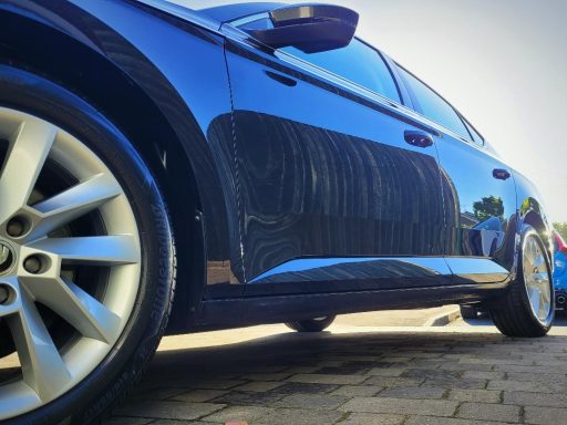 This Skoda Superb is the latest vehicle to receive a single stage machine polish with ceramic coating application. A thorough wash process followed by decontamination prepared the paintwork and glass for the following stages. I have added a couple of photos below which demonstrate the difference made to the lacquer after a single stage polish. The paint was dull and scratched and now it has been transformed to a deep glossy slick finish. The owner left us a fantastic review and would like us to continue to take care of this car.