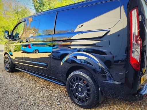 A Ford Transit Custom received our exterior full valet package along with some isolated scratch reduction / removal work. Given a thorough clean the results are fantastic giving the van a nice amount of gloss, not bad for a works van!