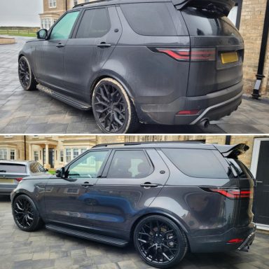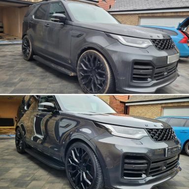 We were back for a third time to detail another vehicle for the same client. This time a top of the range Land Rover Discovery R-Dynamic was booked in for a single stage machine polish to eliminate the majority of surface defects whilst massively boosting gloss. We then applied a 5 year ceramic coating to the paintwork, glass and alloy wheels, along with all the smaller details to make up the whole package. Here are the results, absolutely stunning.