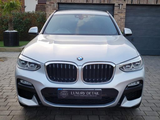 The brand new shape BMW X3 M-Sport payed us a visit to have a 3 year ceramic coating applied. The owner of the vehicle brings his new cars to us every time to have ceramic applied knowing how well it looks after the condition of the paintwork. We also carried out a repair to the front bumper corner after it had been hit by another vehicle and removed several scratches prior to the application. The X3 looks absolutely stunning!