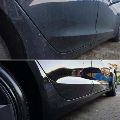 This lovely pearl white Tesla came to us to have some repairs carried out to the front bumper and side skirt due to peeling lacquer from a previous repair. We then gave the car our interior and exterior maintenance valet.
