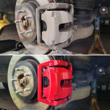 Working again on the Land Rover Discovery enhanced by URBAN Automotive, we felt that refurbishing the calipers in Rosso Corsa Red with added 'Land Rover' decals on the front would really finish off the look this vehicle has. We pride ourselves in carrying out the very best and most meticulous work and this is very apparent when we do caliper refurbs, we spend a long time in the preparations and the results speak loudly for themselves, take a look at these results.