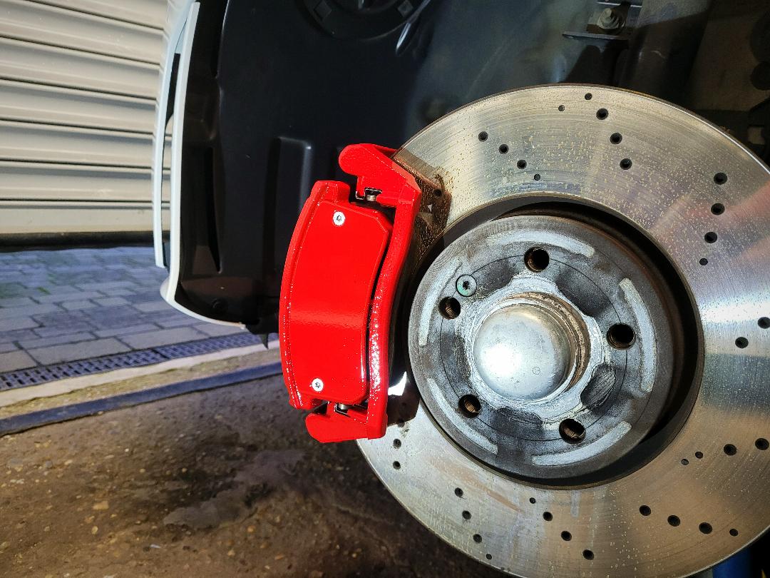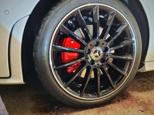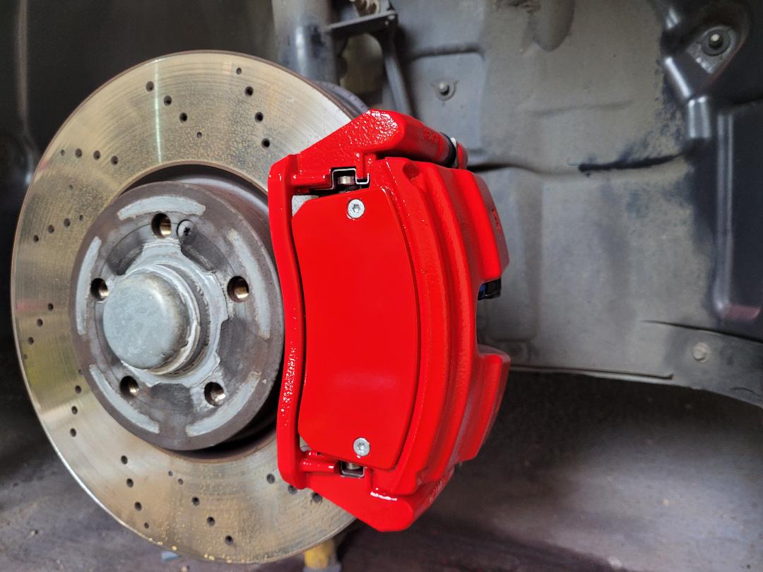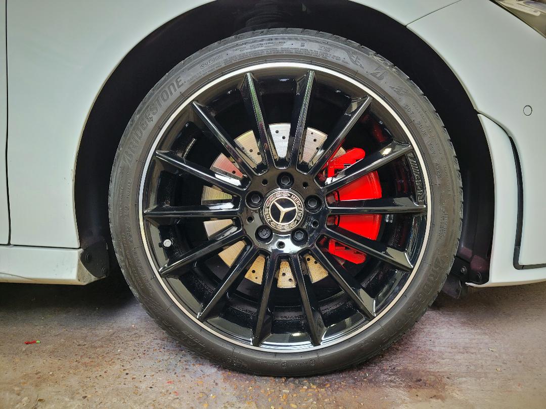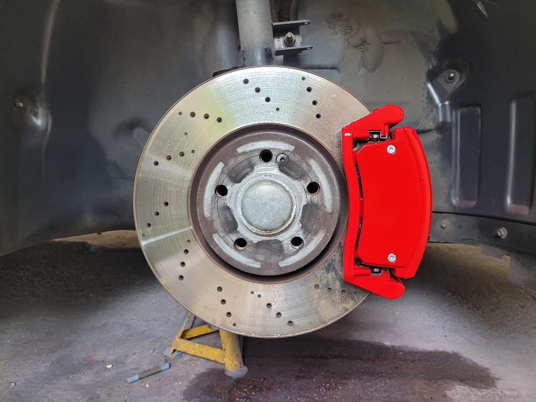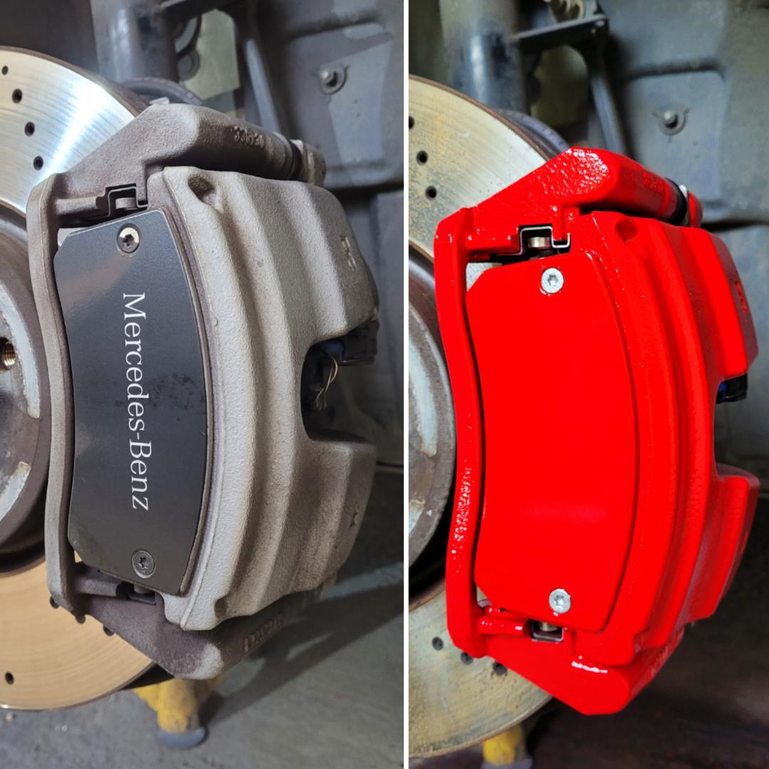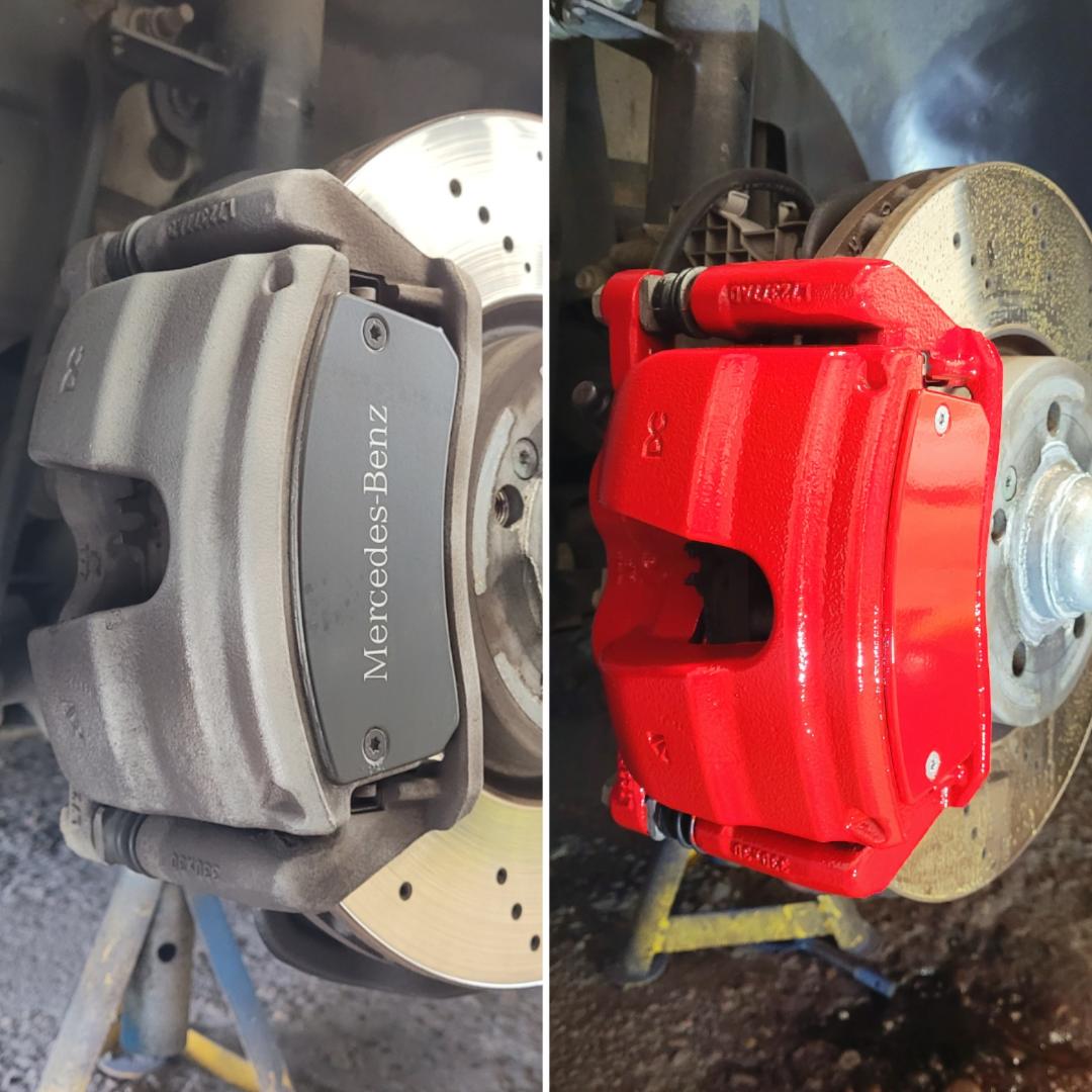 Mercedes C Class Brake calipers refurbished to Rosso Corsa Red