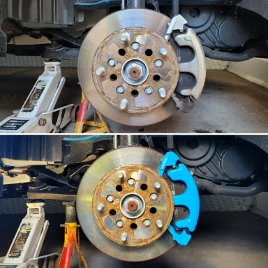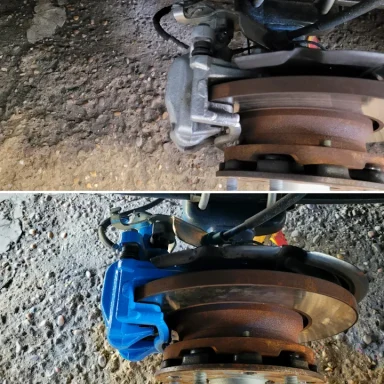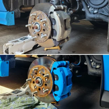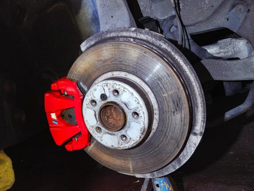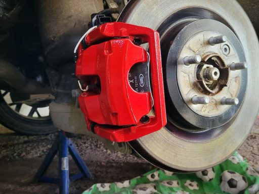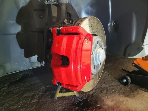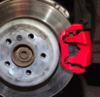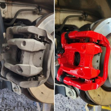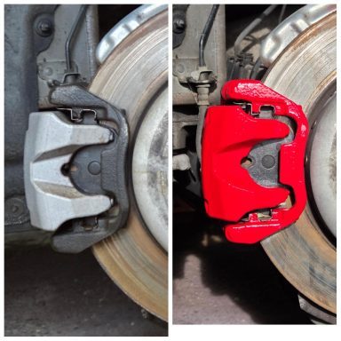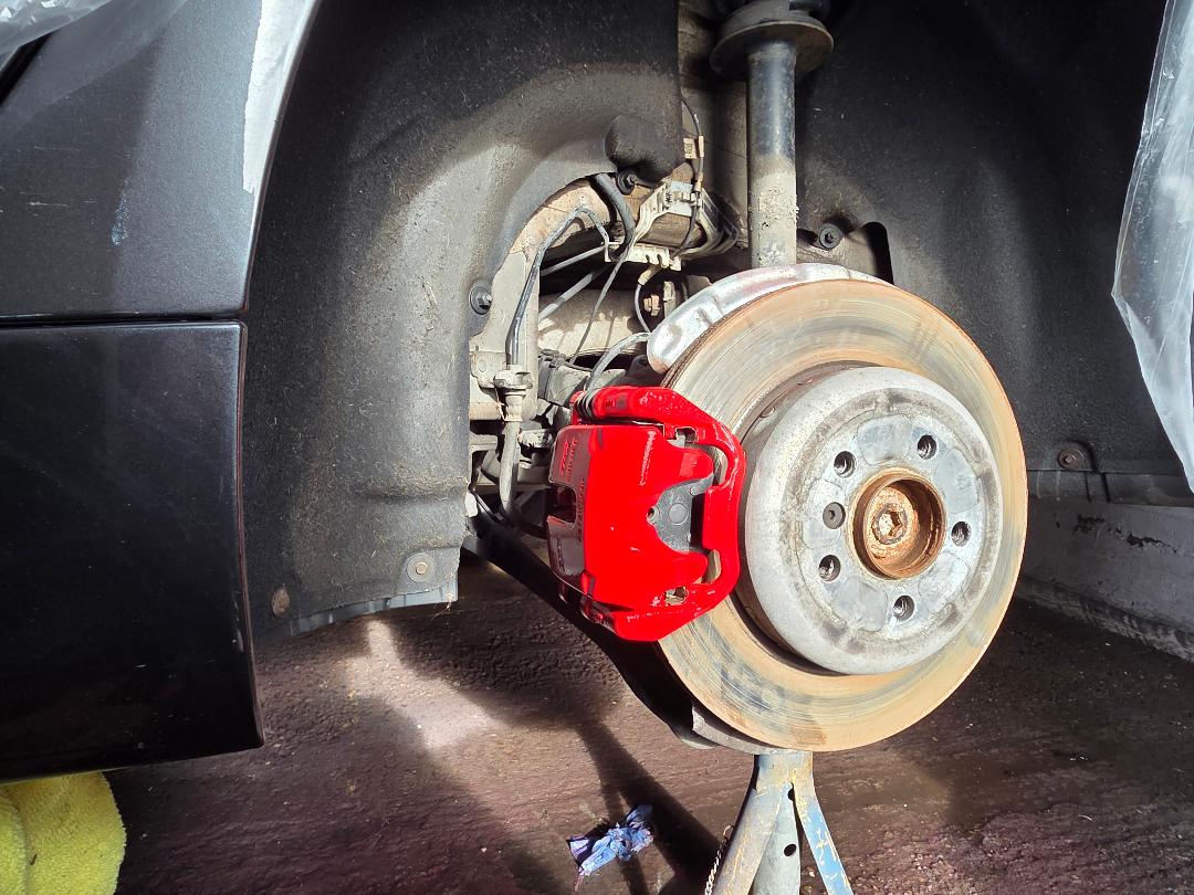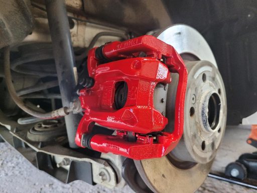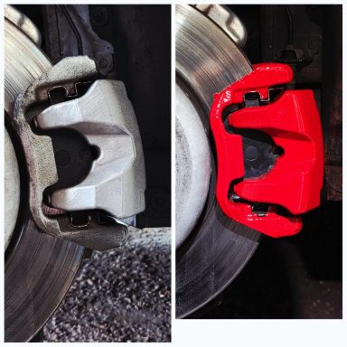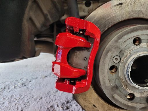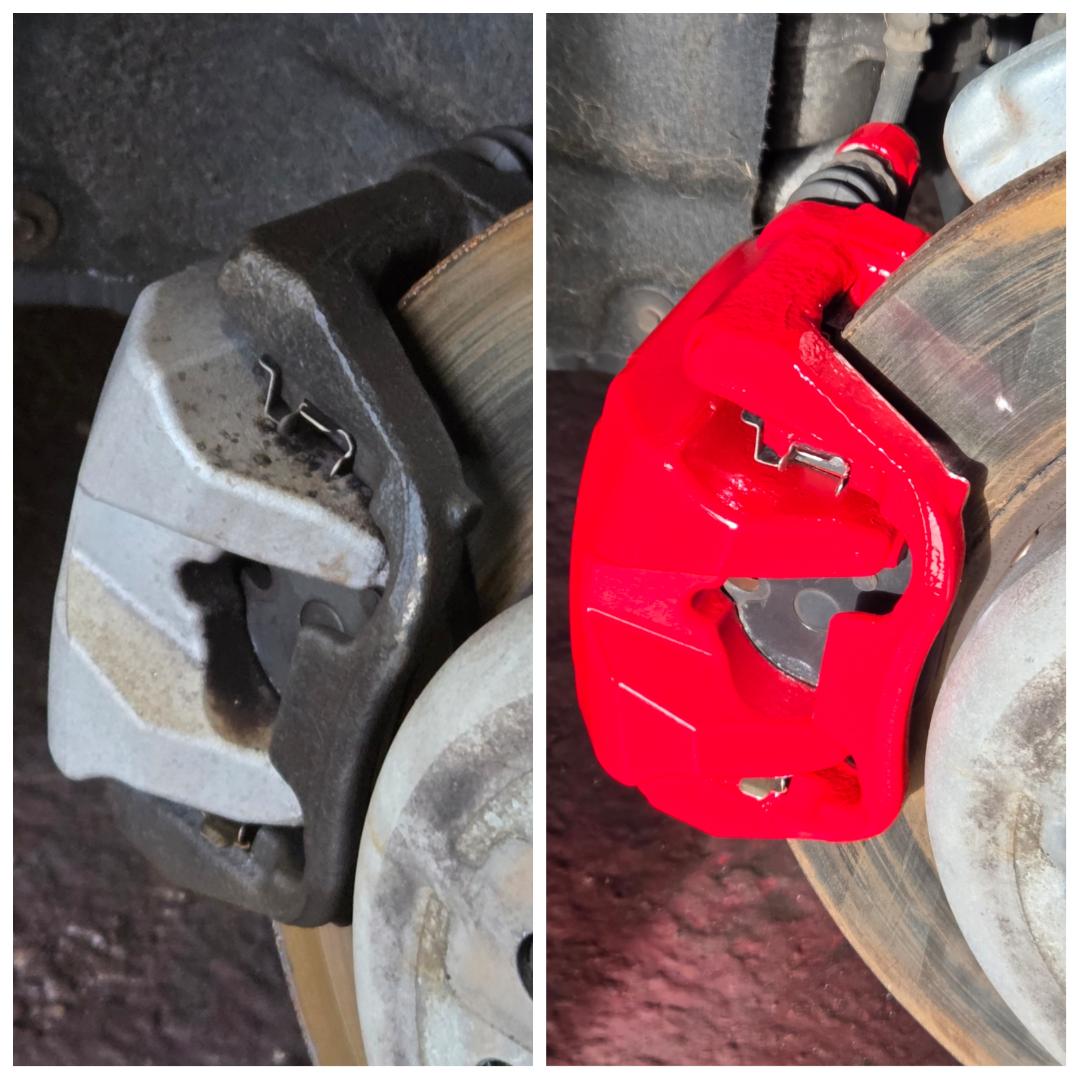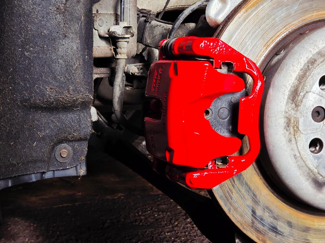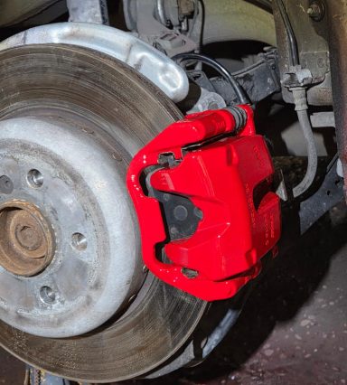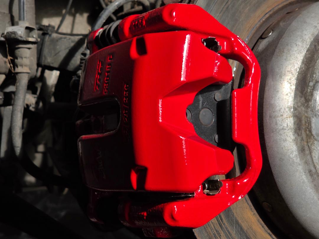 Mercedes C Class Brake calipers refurbished to Rosso Corsa Red