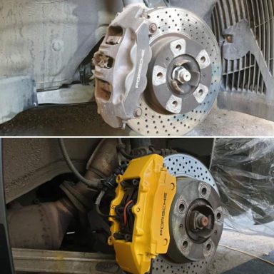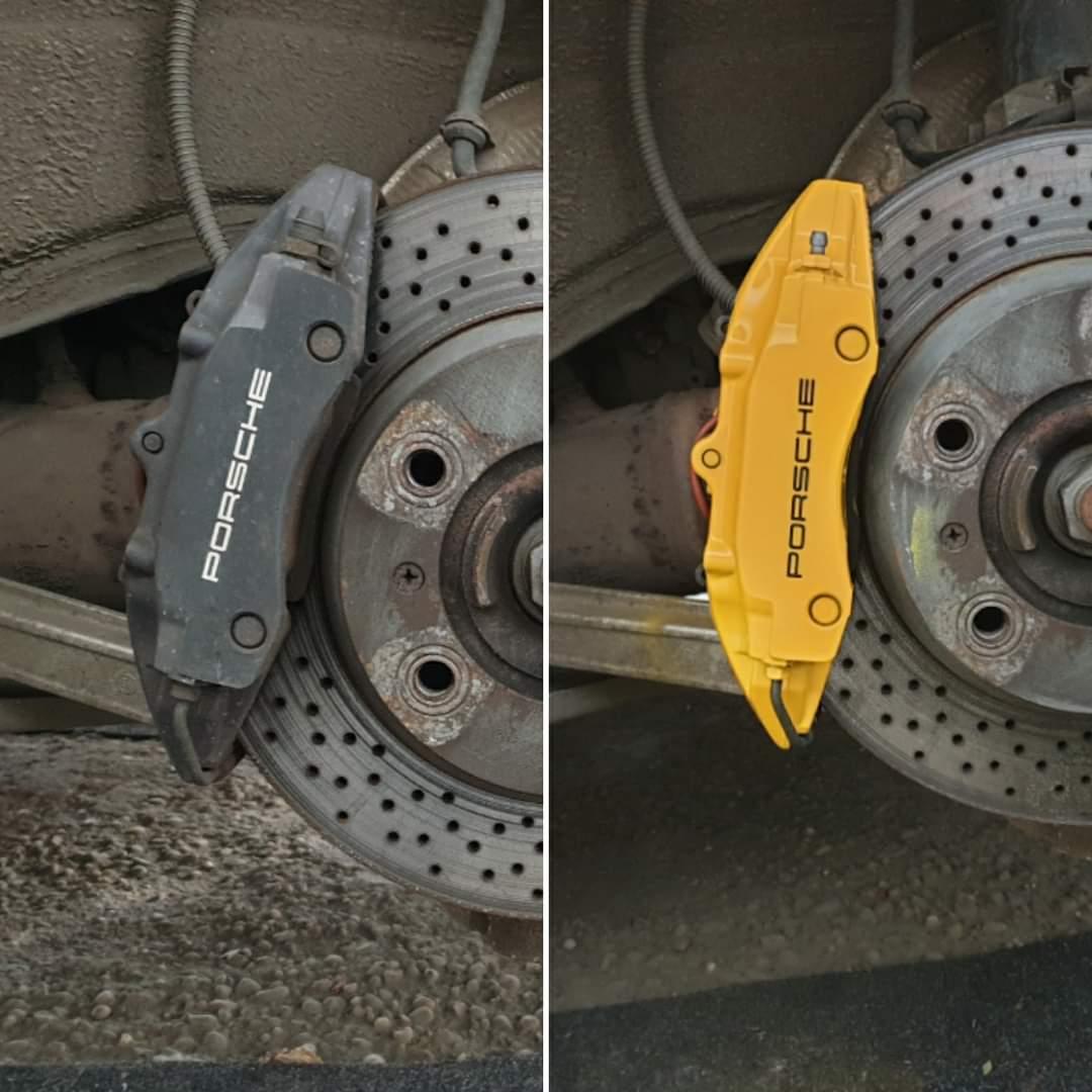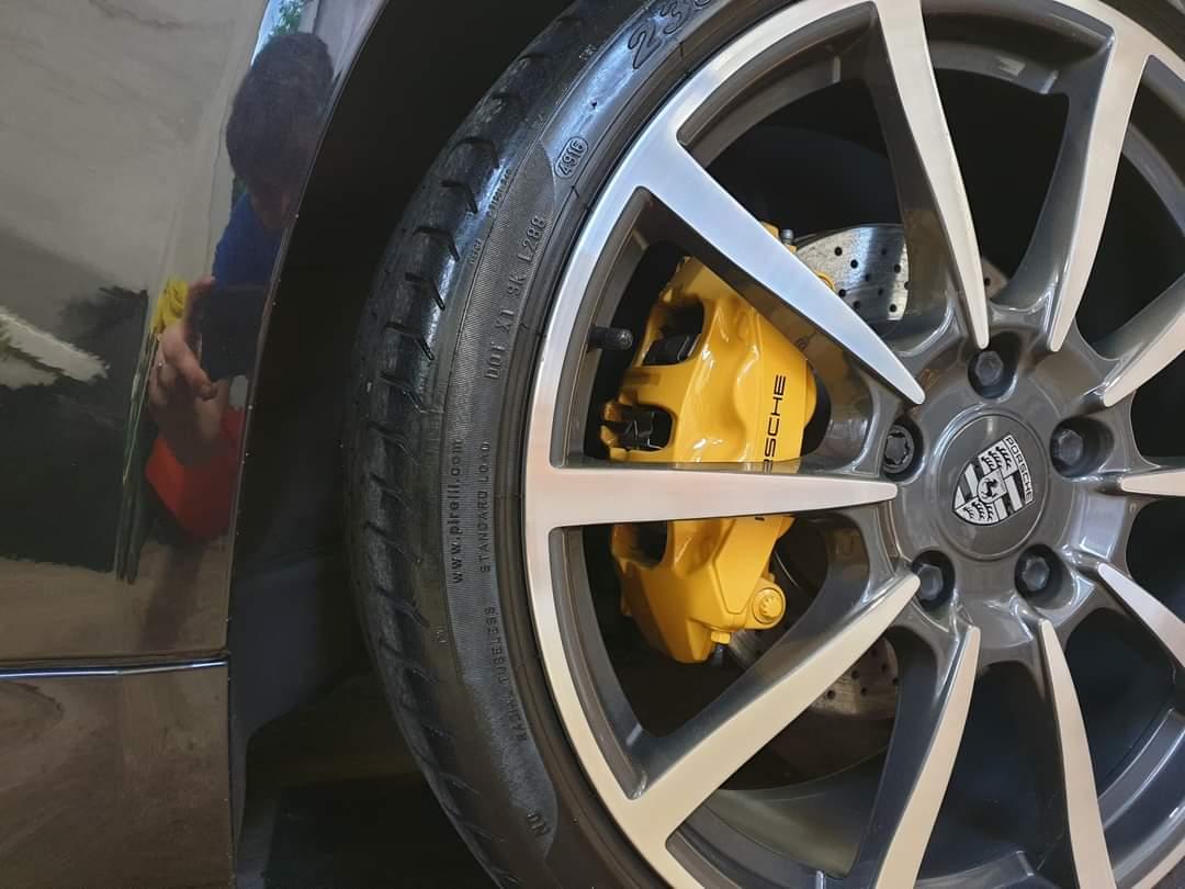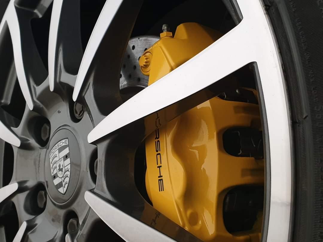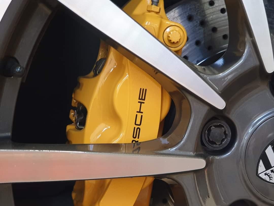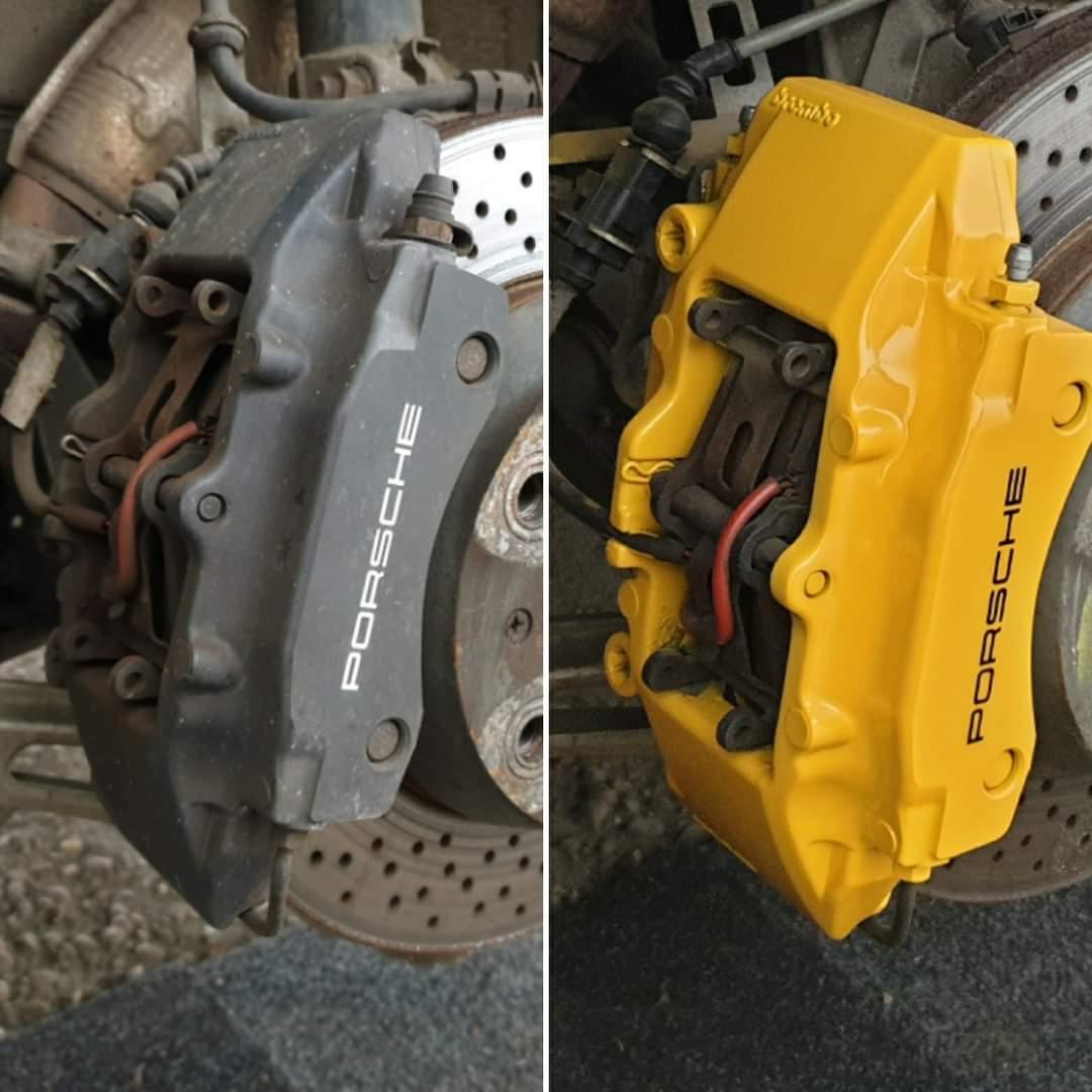 Porsche 911 Brake calipers refurbished to Speed Yellow